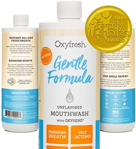 Amazon Com Oxyfresh Gentle Formula Unflavored Mouthwash Perfect For Ultra Sensitive Gums Teeth No Mint Zero Alcohol Flavor Free Fresh Breath 16 Oz Health Household